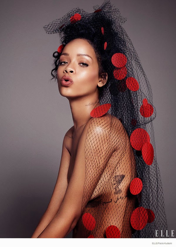 hiện trên tạp chí Elle Mỹ ấn bản tháng 12, nữ ca sĩ Rihanna tạo dáng đầy cá